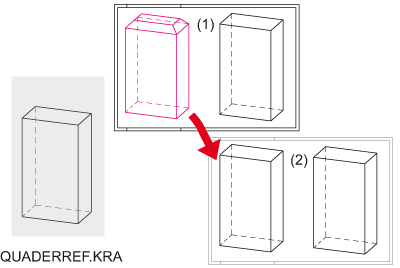 Die Abbildung zeigt ein referenziertes Teil QUADERREF.KRA (links).