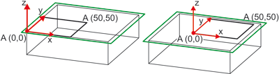 Bearbeitungsebene, neuer Nullpunkt ändert den Nullpunkt des beim Anlegen der Skizzenebene automatisch erzeugten lokalen Koordinatensystems. Die Funktion hat keine Auswirkungen auf die Lage oder die Darstellung der Skizzenebene, sondern nur auf Punktoptionen. |
