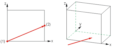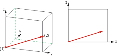 Der Vektoranfang liegt in dem Kantenende, das dichter am 1. Identifizierungspunkt liegt. Der Vektor steht senkrecht auf der gewählten Fläche. |