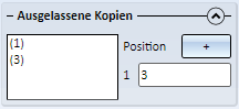 Wie bei den anderen Musterwiederholungen haben Sie auch hier die Möglichkeit, einzelne Kopien auszulassen, d.h. nicht zu generieren. Bei dieser Angabe muss aber hier die Anzahl der Arbeitsschritte (Muster) berücksichtigt werden. Außerdem hat hier das Original des jeweiligen Bearbeitungsschrittes die Nummer 0.