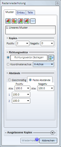 Nach dem Aufruf der Funktion wird das Dialogfenster Rasterwiederholung angezeigt.
