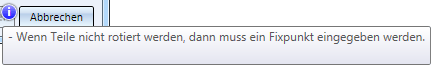 Zeigt an, dass Sie für die Funktionsausführung unbedingt notwendige Angaben nicht gemacht haben. Wenn Sie mit dem Cursor über das Symbol fahren, erhalten Sie Informationen darüber, welcher Schritt vor Ausführung der Funktion unbedingt noch erforderlich ist, beispielsweise