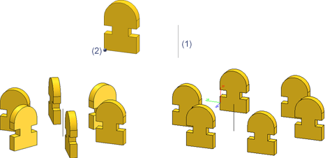 Mit dieser Funktion lässt sich das aktive Teil oder die aktive Teileliste im Muster rotatorisch - durch Drehen um eine Achse - kopieren.