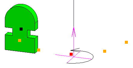 und identifizieren Sie die Kante, die Sie als Rotationsachse verwenden wollen. Wollen Sie die Kante durch Bestimmung zweier Punkte festlegen, dann können Sie diese entweder über den Autopiloten bestimmen oder anstelle der Kantenidentifizierung die rechte Maustaste drücken, die Funktion 2 Punkte wählen und dann die gewünschten Punkte festlegen. Haben Sie die Rotationsachse bestimmt, dann wird im Dialogfenster die Bestimmungsart Kante oder Zwei Punkte angezeigt.Über die Checkbox Teile mitrotieren legen Sie fest, ob die Kopien entlang der Rotationsbahn mit rotiert oder nur verschoben werden sollen. Ist die Checkbox inaktiv, d.h. sollen die Kopien nicht mitrotieren, dann muss zusätzlich ein Bahnpunkt festgelegt werden. Über diesen Punkt werden die Kopien auf der Rotationsbahn verschoben.