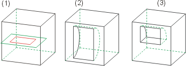 durch Vollrotation, (3) Ausnehmung durch Teilrotation (Segment)