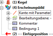 Das Ändern der Kantenparameter (einzeln, im Rechteck, Linienzug) wird im Featureprotokoll unter dem Eintrag Erscheinungsbild festgehalten.