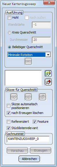 Haben Sie unter Ausführung die Option Beliebiger Querschnitt gewählt, dann müssen Sie nun die entsprechende Skizze identifizieren oder neu zeichnen.