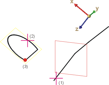 (1) Leitlinie, (2) Skizze für den Querschnitt, (3) Punkt für Drehung