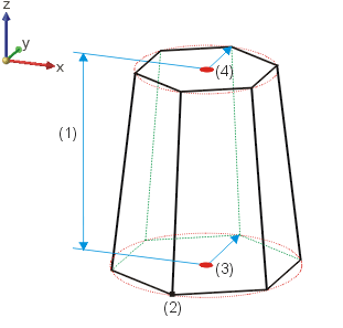 (1) Höhe, (2) Eckenzahl, (3) Radius Basisfläche, (4) Radius Deckfläche