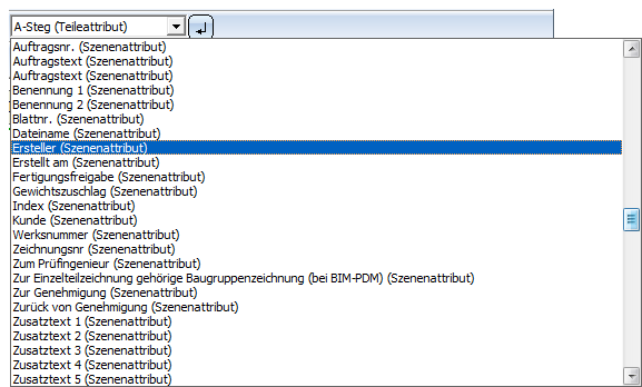 HiCAD-Teileattribute sowie HELiOS Teilestammattribute lassen sich direkt im Beschriftungseditor in der rechten Listbox auswählen.