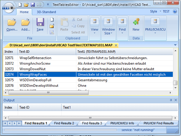 Auch Text-IDs aus dem HiCAD-Textdienst (wie im Editor TEXTTABLESEDITOR.EXE angezeigt) lassen sich in Beschriftungsfahnen verwenden. Dies erfolgt aber nicht über den Beschriftungseditor, sondern muss in Vorlagendateien (FTD) entsprechend eingestellt werden: