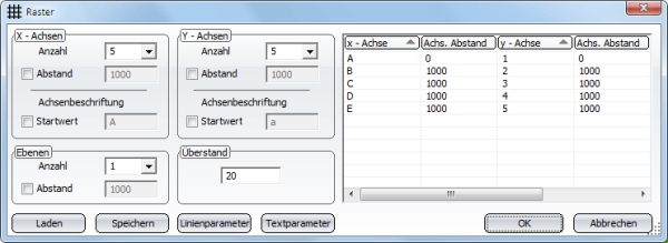 Anzahl der Rasterlinien in X- bzw. Y-Richtung |