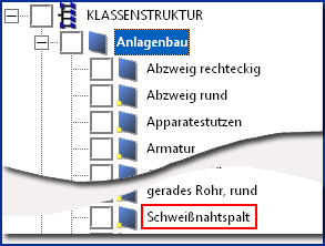 Existiert in Ihrer HELiOS-Datenbank unterhalb der Klasse Anlagenbau keine Klasse mit dem Namen Schweißnahtspalt, dann müssen Sie Ihre Datenbank erweitern.