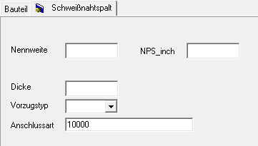 Registerkarte Schweißnahtspalt: