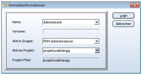 Zunächst erscheint das Login-Fenster: