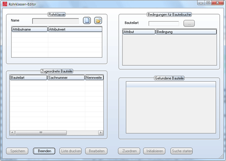 Nach dem Aufruf der Funktion wird das Dialogfenster Rohrklassen-Editor angezeigt.