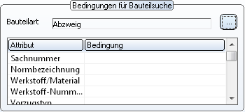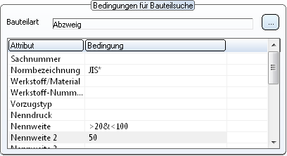 Sie haben hier die Möglichkeit, die Bauteilsuche durch Angabe von Suchbedingungen zu filtern. Um einem Attribut eine Suchbedingung zuzuweisen, doppelklicken Sie in der Spalte Bedingung auf die entsprechende Zeile und geben Sie die Suchbedingung ein. Diese darf die üblichen Jokerzeichen ? (für ein beliebiges Zeichen) und * (für eine beliebige Zeichenkette) enthalten. In Suchbedingungen für Zahlenwerte sind die Operatoren <, >, <=, >=, != zulässig. Darüber hinaus lassen sich Bedingungen durch & (logisches UND) verknüpfen.