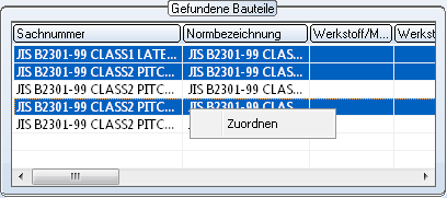 Sie starten die Bauteilsuche durch einen Klick auf die Schaltfläche Suche starten. Alle Bauteile, die die angegebenen Suchbedingungen erfüllen, werden unter Gefundene Bauteile aufgelistet.