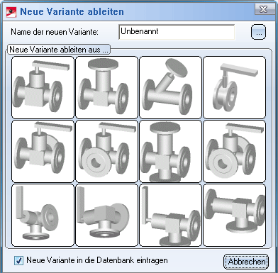 Nach dem Aufruf der Funktion wird zunächst die Dialogbox Neue Variante ableiten angezeigt.