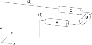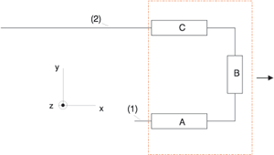 - Bei Rechteck angeben ... spannen Sie ein Rechteck auf, das die Bauteile A, B und C vollständig einschließt, wie unten in der Abbildung gezeigt. Sie beenden die Rechtecksbestimmung mit rechten Maustaste.