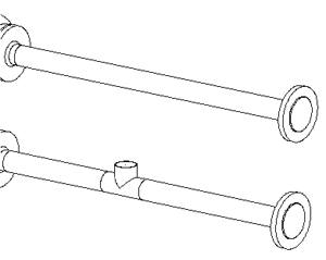 - Die verbliebenen Lücken auf der Leitkante werden automatisch mit geraden Rohren geschlossen, und zwar werden Rohre derselben Normbezeichnung eingesetzt, die das zuvor gelöschte Rohr trug. Wenn für die Anschlüsse des eingefügten Bauteils Nennweiten und Wanddicken definiert sind, werden diese als Kriterien zur Suche der Rohre verwendet. Führt die Suche nach den passenden Rohren nicht zu einem eindeutigen Ergebnis, erscheint eine Auswahlliste, aus der Sie das geeignete Rohr aussuchen.