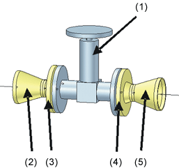 (1) ausgewählte Armatur, (2) - (5) automatisch hinzugefügte Flansche und Reduzierstücke