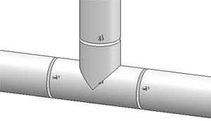 Schweißnahtspalte für verschiedene Nennweiten werden als Bauteilvariante realisiert. Diese repräsentiert kein wirkliches Bauteil, sondern liefert zu der jeweiligen Nennweite ein 3D-Teil mit der halben Spaltbreite. Die Lücke zwischen zwei stumpf miteinander verschweißten Bauteilen wird dann durch zwei dieser Teile gebildet. Im Lieferumfang von HiCAD ist eine Schweißnahtspalt-Variante mit dem Namen DefaultWeldGap.vaA enthalten.