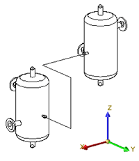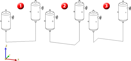 Mit dieser Funktion können Sie einen Leitkantenzug mit bis zu drei Zwischenpunkten automatisch erzeugen und optional Rohrbögen, geraden Rohren, Flanschen etc. belegen. Sie brauchen lediglich die Anschlüsse zu markieren, in denen der Leitkantenzug beginnen bzw. enden soll.