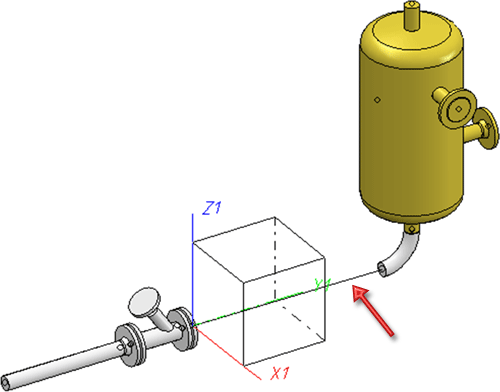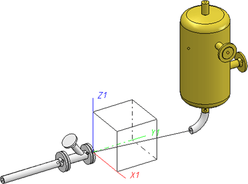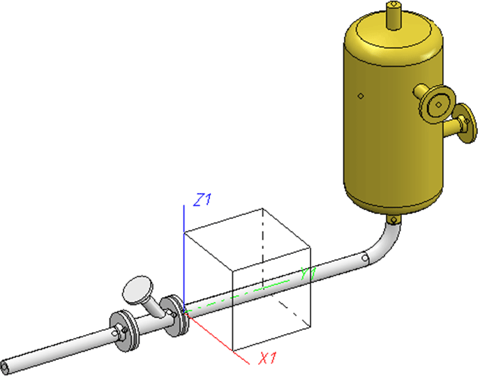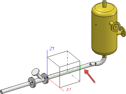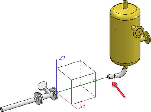Sie verschieben den Behälter einschließlich des Rohrbogens in X-Richtung. Dazu verwenden Sie die Funktion Punkte verschieben.