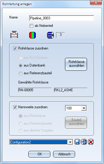Beim Aufruf der Funktion Rohrleitung anlegen wird immer automatisch die Default-Konfiguration geladen.