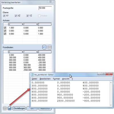Die Punkteliste eines Leitkantenzuges lässt sich jetzt in einer Datei speichern bzw. laden.