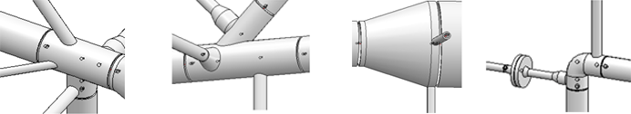Hier liegen auf einem Abzweigpunkt drei Bauteile der Bauteilart Sattelstutzen und ein Bauteil der Bauteilart gerades Rohr. Das Rohr wird dabei als gebogenes Rohr verwendet.