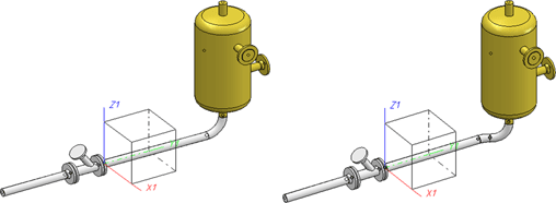 Mit den Funktionen Armaturen austauschen in nur einer Rohrleitung und Armaturen austauschen in allen Rohrleitungen lassen sich nun auch Armaturen austauschen, die nicht auf einer Leitkante liegen. Hier gelten aber folgende Einschränkungen: Die neu einzusetzenden Bauteile müssen dieselbe Länge aufweisen wie die, die ersetzt werden sollen. Außerdem müssen neue und ersetzte Bauteile an den entsprechenden Anschlüssen in Nennweite und Anschlussart übereinstimmen. Eventuell zu den bisherigen Bauteilen gehörende Dichtungen oder Schweißnahtspalte bleiben unverändert und werden von den neuen Bauteilen übernommen.