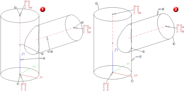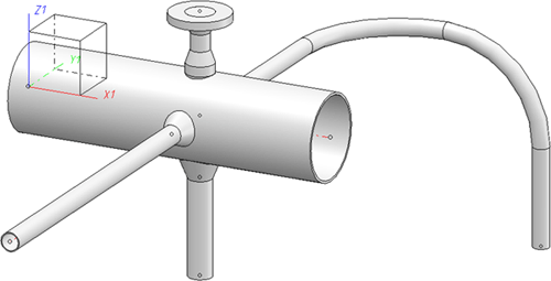 Nun kann auf die gleiche Weise auch von Bauteilen der Bauteilart T-Stück, Abzweig, konzentrische Reduzierung und Knie abgezweigt werden, jeweils in einem zylindrischen Abschnitt, der in einer Anschlussfläche endet. Von einem Abzweigpunkt kann auch mehrfach - in verschiedene Richtungen - abgezweigt werden.