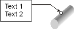 Diese Einstellungen gelten für die auf der Registerkarte Textobjekte noch näher differenzierten zugeordneten Textobjekte. Hierbei handelt es sich jeweils um ein 2D-Textobjekt - z.B. ein Rechteck, in dem ein mehrzeiliger Text steht - das einem 3D-Punkt in einem 3D-Teil zugeordnet ist. Eine Bezugslinie kann optional den 3D-Bezugspunkt in der Grafik, auch über mehrere Knickpunkte, mit dem Textobjekt verbinden. Wahlweise kann eine Pfeilspitze auf den 3D-Punkt zeigen.