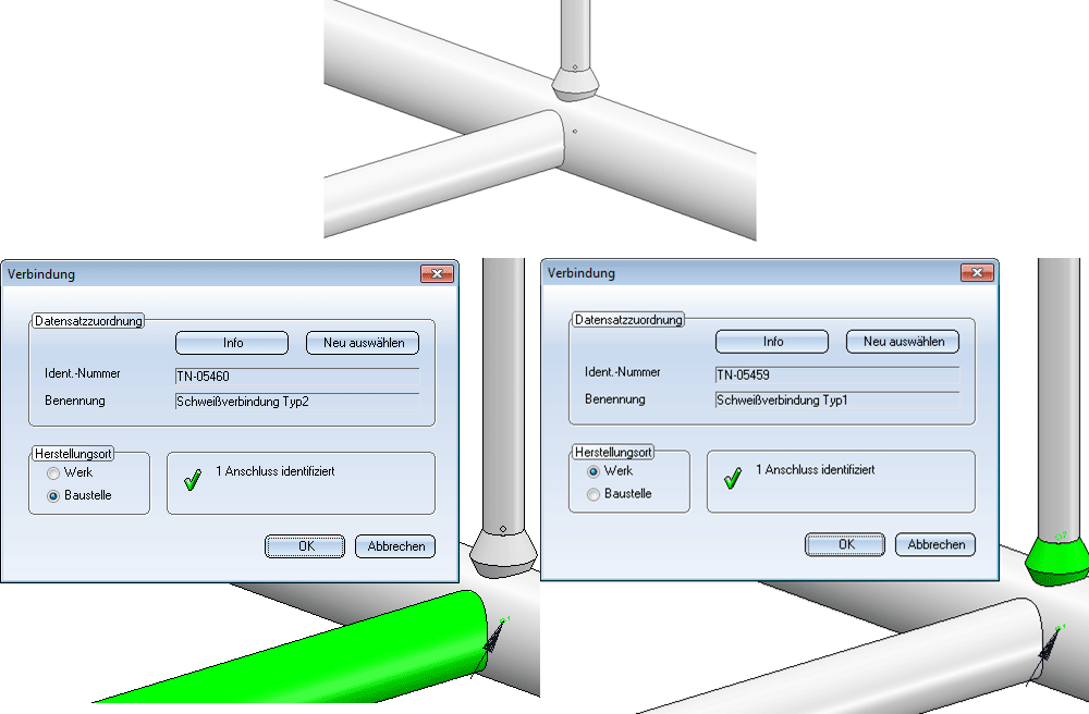 Anlagenbau > Isometrie > Bez... > Verbindungsinfo erzeugen