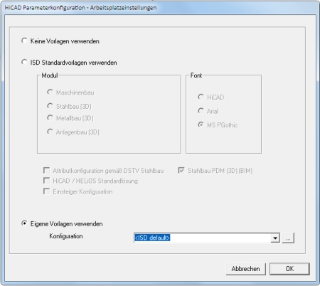 Mit diesem Tool können Sie entweder Standardkonfigurationen aus dem Verzeichnis TEMPLATES der HiCAD-Installation oder eigene Konfigurationen aus einem beliebigen (Netzwerk)Verzeichnis verwenden.