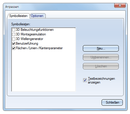 Aktivieren Sie dort die Registerkarte Symbolleisten und klicken Sie auf die Schaltfläche Neu.
