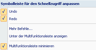 Standardbelegung der Symbolleiste für den Schnellzugriff