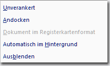 Darüber hinaus haben Sie die Möglichkeit, das Fenster als Register des Andockfensters zu definieren. Dazu verwenden Sie das