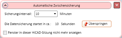 Kurz vor Ablauf des Zeitintervalls blendet HiCAD das Dialogfenster Automatische Zwischensicherung ein: