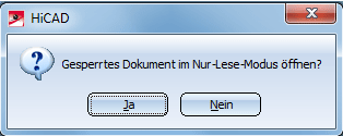 Das Fenster HiCAD - Zugriff verweigert wird angezeigt. Beim Klick auf OK erfolgt die Abfrage,ob die Konstruktion im Nur-Lese-Modus geöffnet werden soll.