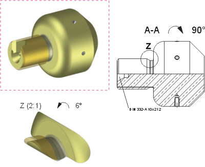 Um eine andere Ansicht zu aktivieren, setzen Sie den Mauszeiger in der Konstruktion auf die gewünschte Ansicht. Wird diese durch ein gestricheltes Rechteck dargestellt, dann drücken Sie die linke Maustaste.