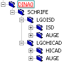 Die von ISD mitgelieferten Zeichnungsrahmen enthalten Dummy-Logos (ISD- und HiCAD-Logos), die Sie individuell löschen bzw. ändern können. Die Zeichnungsrahmen haben die folgende Teilestruktur: