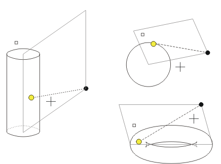 Die Ebene wird durch den aktuellen 3D-Punkt und die Achse des Torus gelegt. Der Zusatzpunkt bestimmt die Tangentenlage.