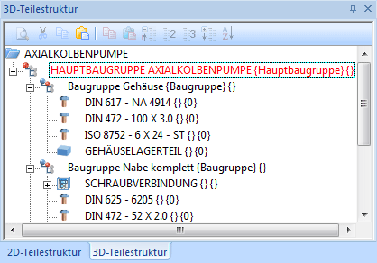 Um in der Teilestruktur zu blättern, verwenden Sie die Tasten ↑, ↓, Bild ↑, Bild ↓, Pos1 und Ende.