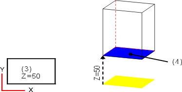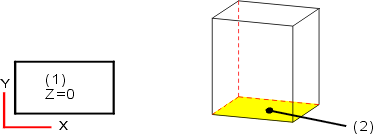 Diese Funktion ist nur sinnvoll bei der Generierung und Positionierung von allgemeinen Zylindern ohne Transformation. Sie wird verwendet, um die Bildschirmebene um den Wert Z zu verschieben. Die Positionierung von 3D-Teilen erfolgt dann von einer zur Bildschirmebene parallelen Frontebene aus.