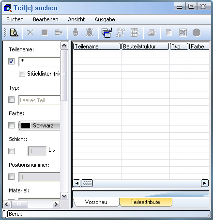 Die Suchfunktion ermöglicht das gezielte Suchen nach Teilen mit bestimmten Eigenschaften.