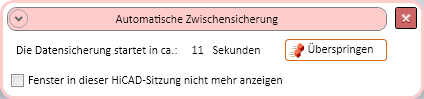 Bei der automatischen Datensicherung hat sich der Funktionsdialog geändert. Kurz vor Beginn der nächsten automatischen Datensicherung wird ein Dialogfenster angezeigt, in dem Sie auch die Möglichkeit haben, eine Zwischensicherung zu überspringen. (SP2)