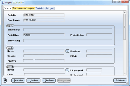 Mit dieser Funktion werden Ihnen die Stammdaten des ausgewählten Projekts in der Eingabemaske angezeigt und können dort bearbeitet werden.